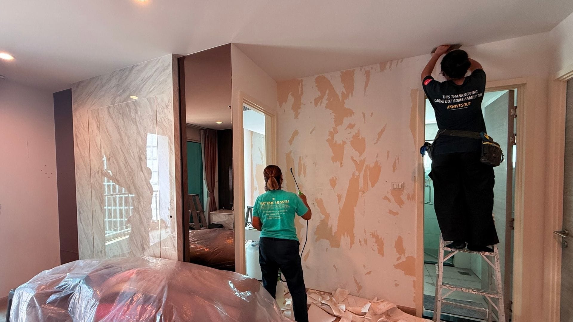 ห้องนี้เคยมีปัญหาน้ำหลายจุด ต้องเดินระบบไฟใหม่บางส่วนด้วย คือราคามันขึ้นกับความยากง่ายด้วย